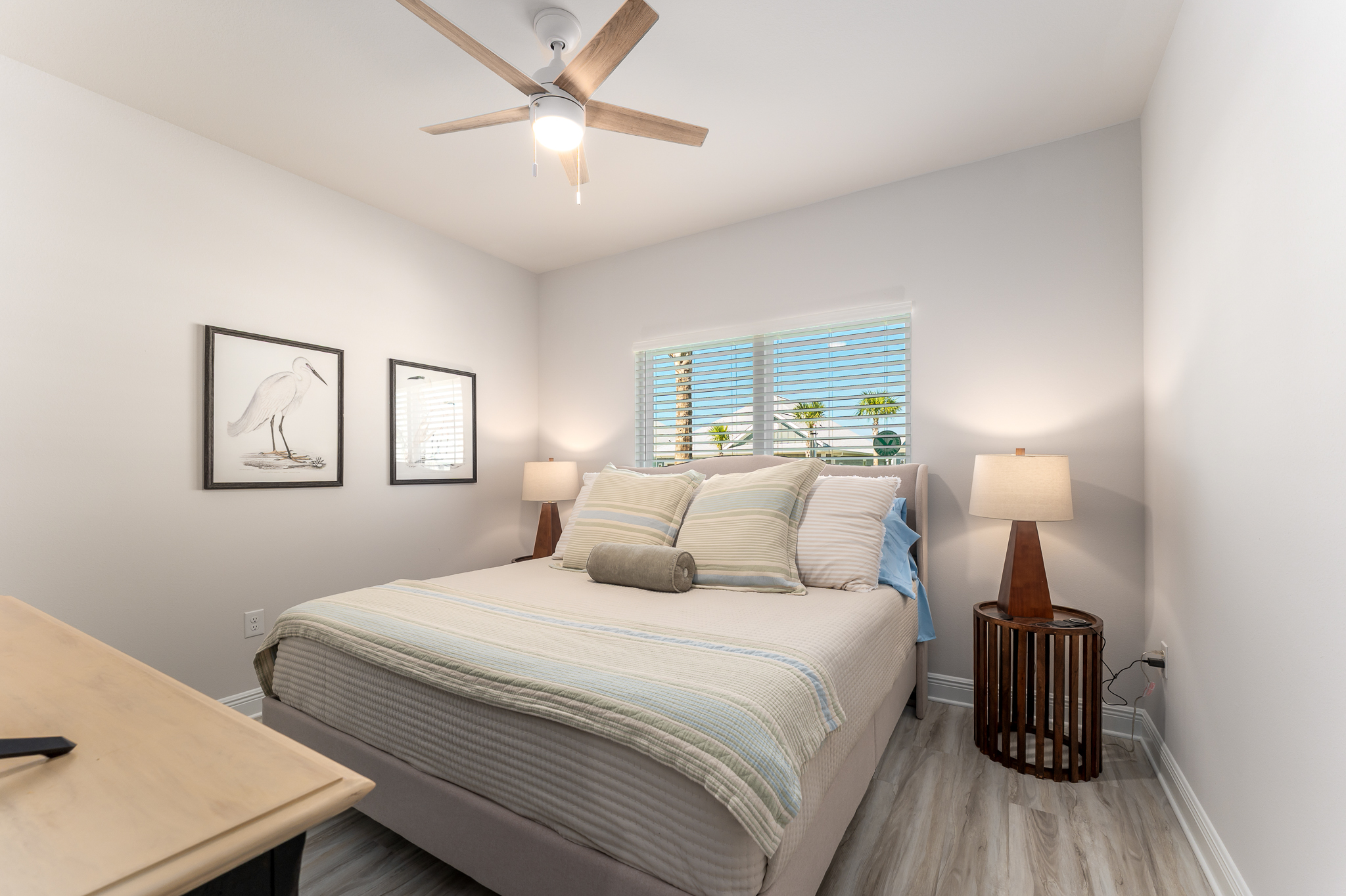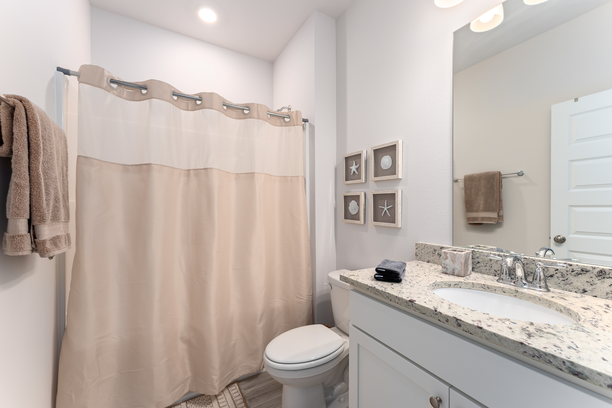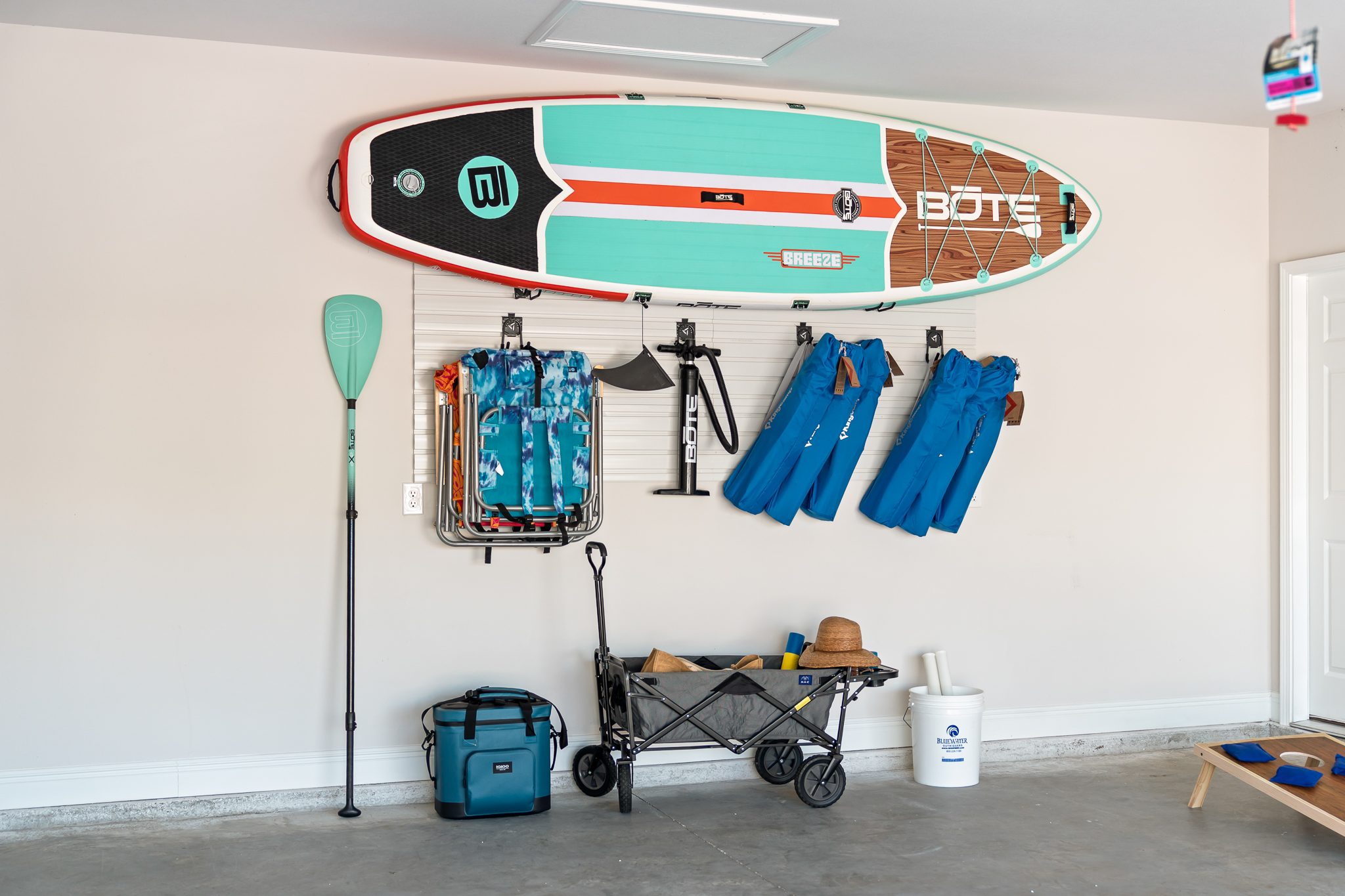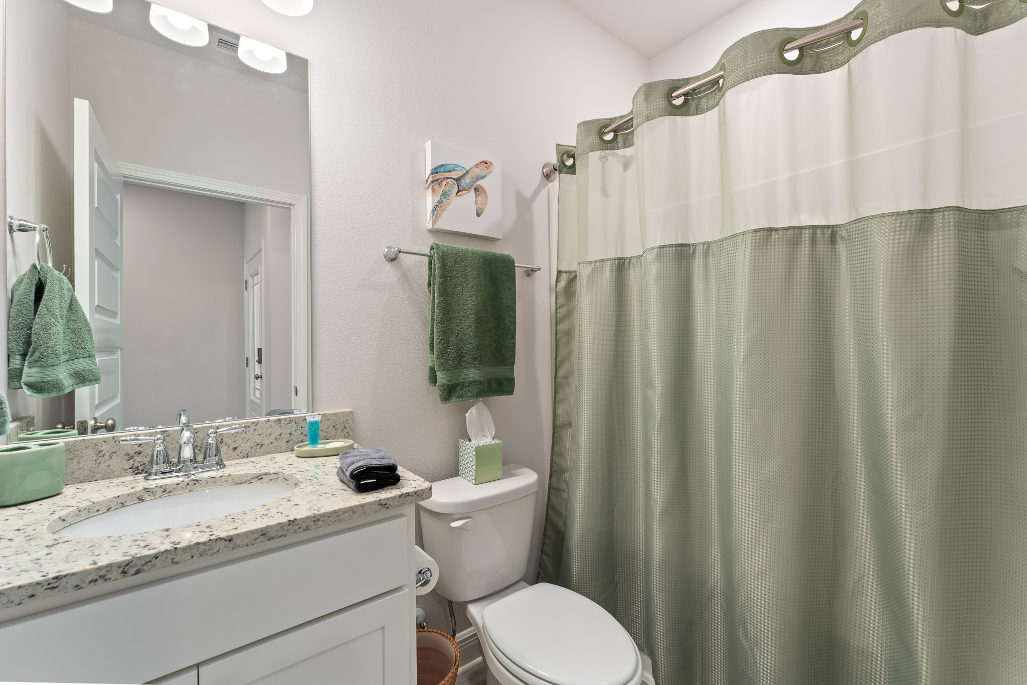A 6-seater golf cart for cruising around the community, a paddleboard for water adventures, and a screened-in porch with outdoor seating make this spot perfect for relaxation. It comes equipped with beach towels, chairs, a wagon, an outdoor shower for rinsing off after sandy outings, and a cornhole game for some outdoor fun. Enjoy fast Wi-Fi, a washer/dryer, smart TVs throughout, and exterior audio/video security (with no devices inside). Family-friendly extras and all your essential beach gear are included for a hassle-free getaway.